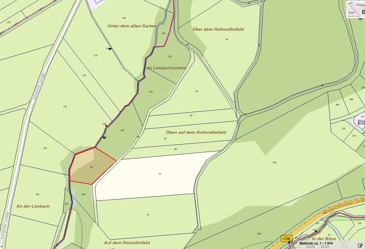 Das Grundstück ist vertrags- und pachtfrei und kann vom Ersteher sofort selbst genutzt werden. Sichern Sie sich jetzt dieses Waldstück im schönen Bröltal, auf dem freien Markt sind solche Flurstücke selten verfügbar.