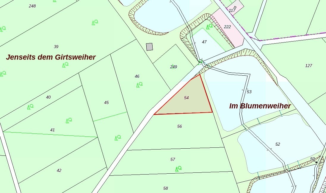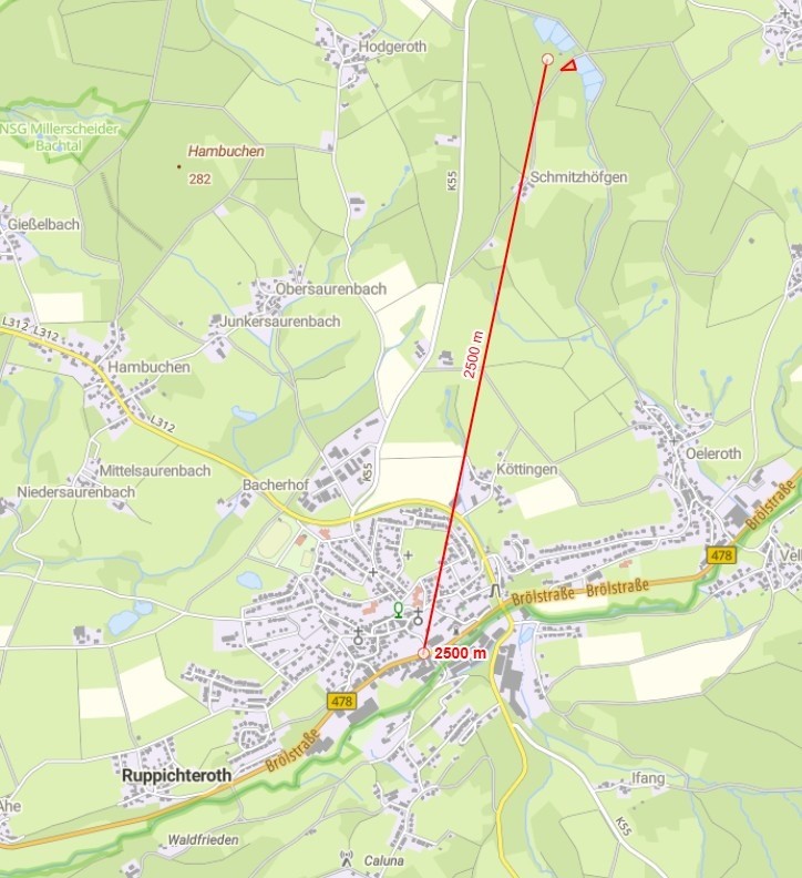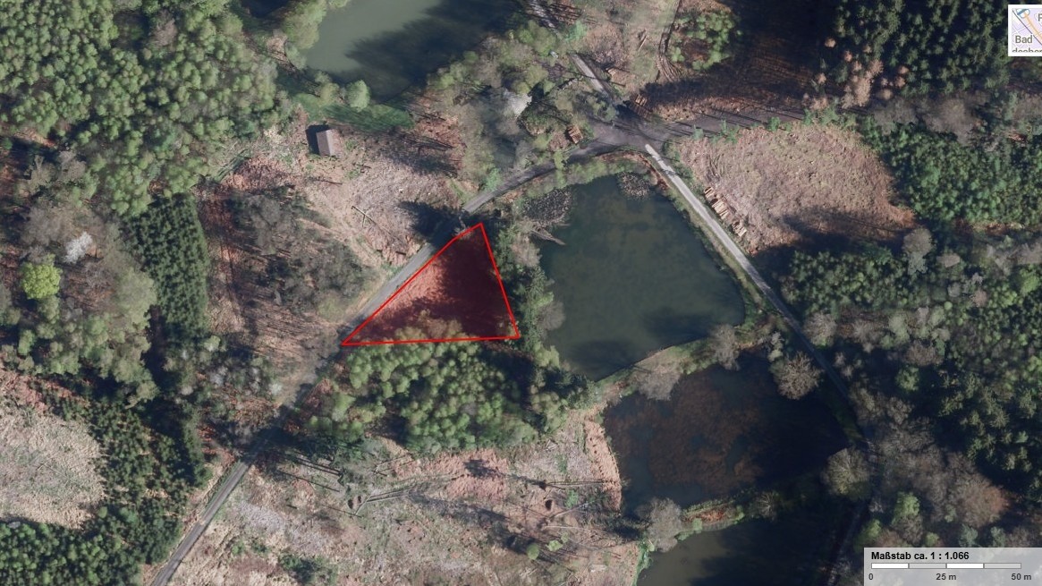 Zum Aufruf kommt eine gut erreichbare Waldfläche unmittelbar neben einer Teichanlage in der Nähe des Weilers Schmitzhöfgen bei Ruppichteroth. Die Fläche ist gerodet, zum Aufwuchs, Naturverjüngung oder der Bestockung liegen keine Informationen vor.
