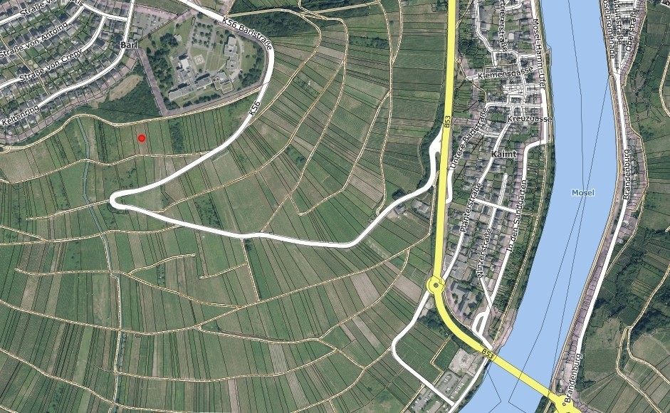 Zell-Kaimt: Aktiver Riesling-Weinberg unterhalb des Krankenhauses, ca. 1.712 m²